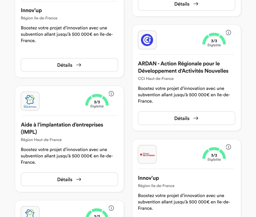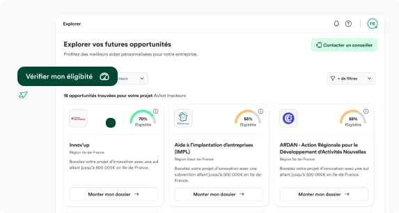 Accédez à un catalogue complet de subventions, prêts garantis et aides régionales adaptés à votre secteur d'activité.